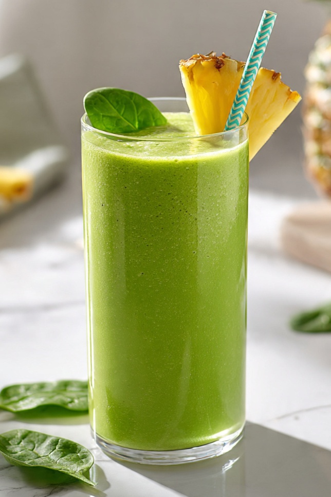 A fresh, creamy green smoothie that tastes like a tropical drink, not vegetables.